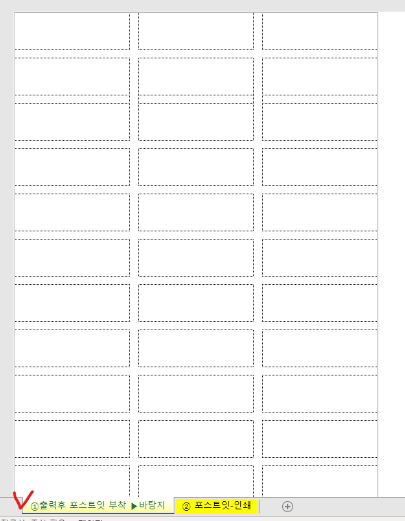 ① "출력 후 포스트잇 부착 ▶바탕지" 시트 인쇄
